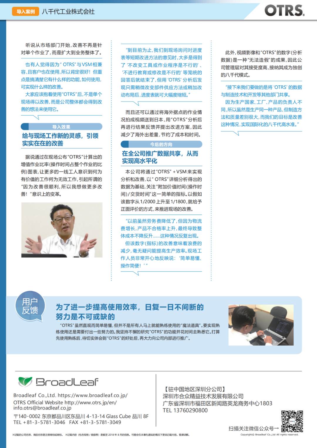 八千代工业株式会社——IE工程师使用“OTRS”后以前需要2周的视频分析工作1天完成,大大节约成本。